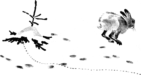 Если утро тихое, — лесной заяц-беляк заскочит в куст, подожмёт ноги и ложится прямо на снег. Сверху зелёное от мороза небо, снизу снежная перина, только она постепенно подтаивает и заяц спит всегда на мокром.