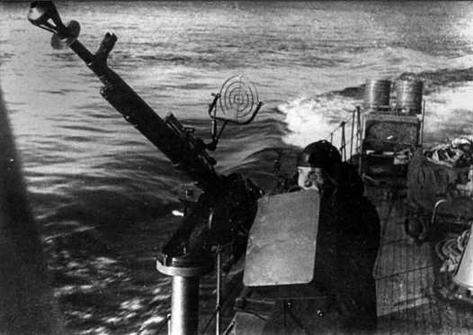 Что касается вооружения малых боевых кораблей и боевых катеров ВМФ СССР, то во второй половине войны флот и промышленность в основном ориентировались на импортные автоматы и крупнокалиберные пулеметы. Так, усиление вооружения торпедных катеров типа Д-3 было произведено за счет замены двух одноствольных ДШК на два спаренных 12,7-мм «Кольт-Браунинг» и дополнительной установки 20-мм пушки «Эрликон». Когда по результатам испытаний выявилась недостаточная защита от ударов с воздуха нового малого охотника типа ОД-200, усиление вооружения было произведено за счет установки импортного 20-мм автомата. Предусмотренные на больших охотниках проекта 122-а пулеметы ДШК на кораблях постройки завода № 402 были заменены пулеметами импортного производства. Малые тральщики проекта 253-Л, строившиеся в Ленинграде, вооружались или четырьмя ДШК или двумя спаренными «Кольтами». Массовое поступление на вооружение флота новых катеров, вооруженных автоматическим пушками, и усиление огневой мощи ранее построенных боевых единиц, увеличивало шансы советских легких сил на победу в схватках с воздушным и морским противником.
