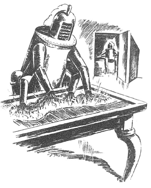 — Вы? — усмехнулся доктор. — По-вашему, роботов используют, только чтобы управлять большими корабельными орудиями, или чем-то подобным. Да вы застряли в средневековье. Поезжайте в лаборатории Вестинхауза, и вы поймете, что за последние несколько лет наука продвинулась достаточно далеко. Мое предписание — кушайте побольше шпината.