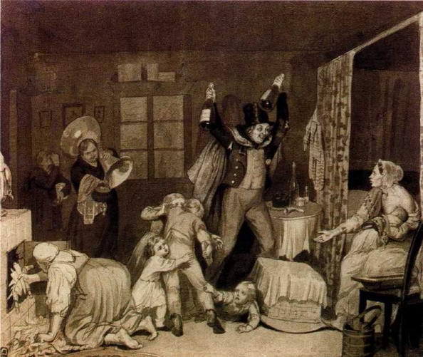 Сюжеты листов опять-таки образуют связную серию, а именно - последовательность предельно высоких, священных «сущностей существования»: смерть, любовь, брак, слава. Но предстают они подернутыми житейской болотной тиной, утрачивая свою существенность и свой масштаб, сокращаясь до размеров того стакана, который обычно поминают в связи с соответствующего размера бурями. Смерть - это скандал по поводу околевшей собачки; любовь - это прельщение бедной девушки подарками прохожих ухажеров; брак - это нищета и скандальные сцены в доме художника, женившегося без приданого в надежде на свой талант, и - в пару к предыдущему - Первое утро обманутого молодого (1844-1846), обнаружившего, что богатство и «красота» невесты были поддельны и взяты напрокат; наконец, слава - это мелкое тщеславие получившего накануне первый крестик чиновника, в неопрятном виде красующегося в неопрятном интерьере перед своей неопрятной беременной кухаркой и сожительницей.