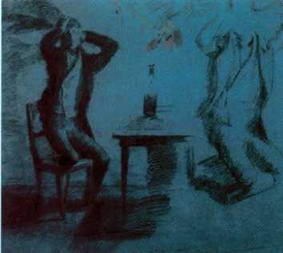 Известны случаи, когда начало и развязка творчества находятся в разительной противоположности (например, Гойя, а в русском искусстве - Валентин Серов или Александр Иванов). Но эволюция столь стремительная - явление уникальное. В Игроках - не просто другая манера, чем в Сватовстве, но противоположный строй миросозерцания. Перемена, равносильная перемещению в другое измерение, имеет катастрофический характер. Ввидутакой метаморфозы трагическая развязка федотовской биографии - смерть в лечебнице для душевнобольных - воспринимается как нечто предопределенное сверхинтенсивной деятельностью творческого интеллекта.