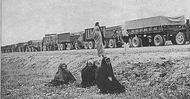 Цех фирмы North British Locomotive. На корпусе танка Matilda лозунг — «Привет нашим союзникам в СССР !». 1941 г.Южное направление поставок по ленд-лизу. Колонна грузовых автомобилей Studebaker проходит через Иран. 1942 г.