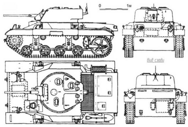 М1 — корпус и башня смешанной клепано-сварной конструкции. Вооружение установлено во вращающейся башне и лобовом листе корпуса. Танки поздних выпусков имели не закругленную, а граненую кормовую часть. Изготовлено 90 единиц, из них три — с дизелем Guiberson.