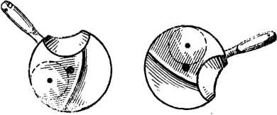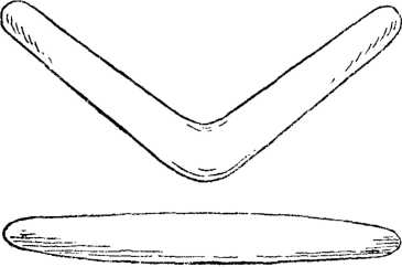 Другим, более интересным образцом метательного оружия был бумеранг, имевший распространение еще в древности у египтян; применяется он в настоящее время в Австралии для охоты. Форма его показана на рис. 6.