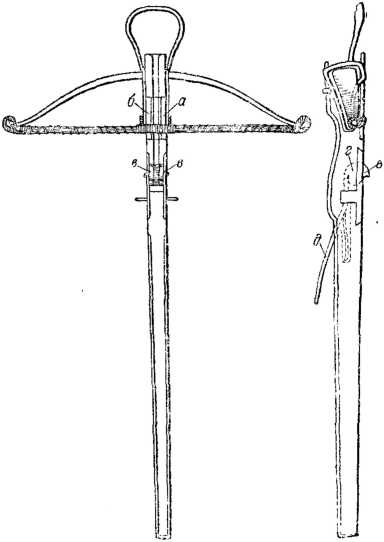 На рис. 11 изображен арбалет; стрела помещалась в нем между стенками