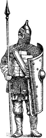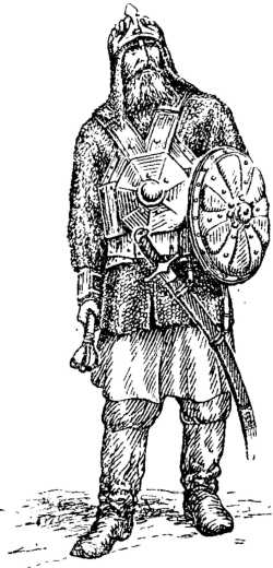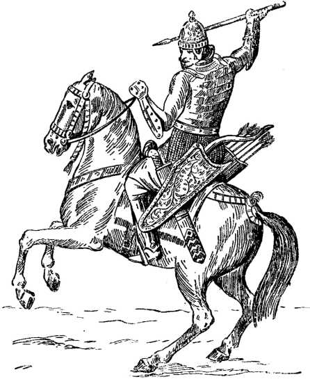 Во время похода князя Игоря на половцев в 1185 г., воспетого в знаменитом памятнике русского эпоса «Слово о полку Игореве», русские воины-дружинники были вооружены луками, копьями и мечами (рис. 16).