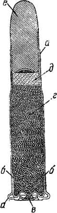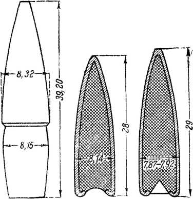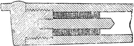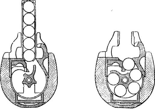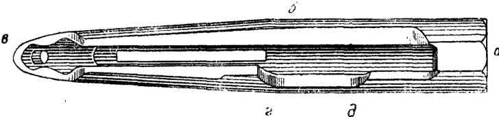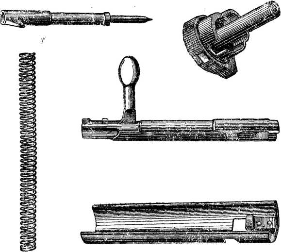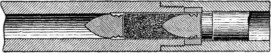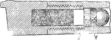 Целый ряд опытных исследований производится с целью устранить мешкотные способы заряжания этого более меткого и дальнобойного оружия; постепенно отходят от тугой загонки пули в канал ствола, обращаясь к пулям, расплющиваемым ударами шомпола в штуцерах Дельвиня и Тувенена, а затем к пулям, расширяемым действием пороховых газов — к пулям Минье и Тиммерганса, и, наконец, к пулям, сжимающимся по длине и расширяющимся по диаметру— в новейшем оружии.