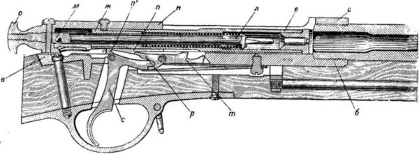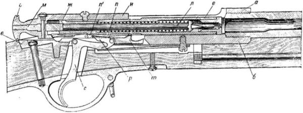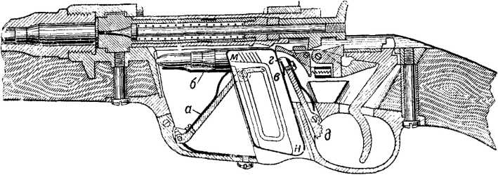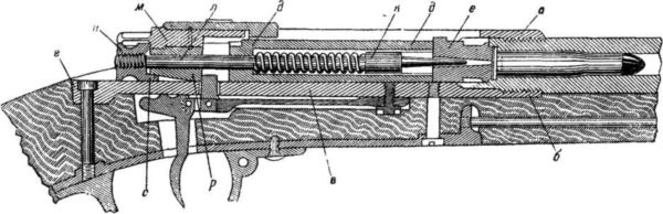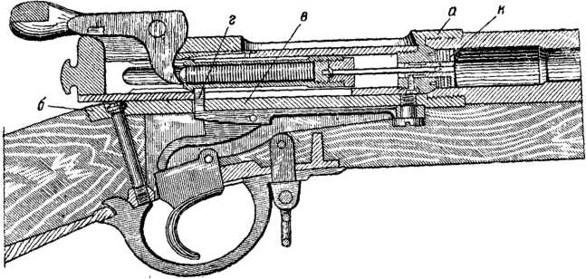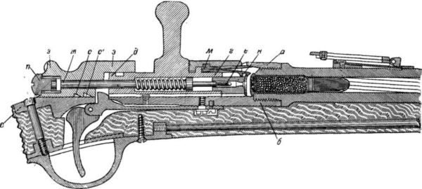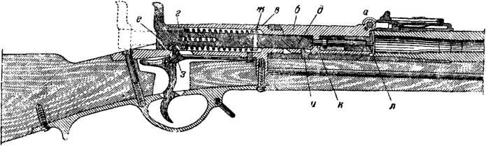 Последовательные достижения техники имеют следствием переход к винтовкам, заряжаемьм с казны, магазинным и, наконец, автоматическим с облегчением приемов заряжания и попутным увеличением скорострельности. В последней винтовке работа стрелка по подготовке к выстрелу доведена до минимума.