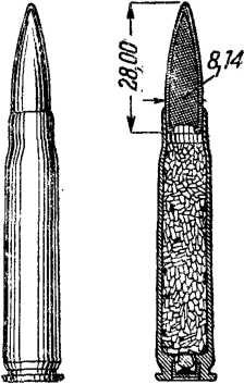Более интенсивная разработка автоматической винтовки началась у нас, так же как и за границей, после Русско-Японской войны; в то время начали работать в этом направлении В. Федоров, В. Дегтярев, Ф. Токарев, М. Рощепей и др. В 1907 г. В. Федоровым был составлен первый у нас курс по автоматическому оружию. Его автоматическая винтовка, в разработке которой принимал непосредственное участие конструктор, ныне Герой Социалистического Труда В. Дегтярев, была подвергнута наиболее подробным испытаниям; система В. Федорова была разработана для русских, японских, а также для новых патронов с улучшенной баллистикой, спроектированных В. Федоровым (рис. 149).