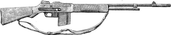 Результаты ее применения также были не вполне благоприятны, а потому во французской армии был предпринят целый ряд изысканий в отношении дальнейшего усовершенствования этого оружия. В 1918 г. была принята на вооружение новая автоматическая винтовка, которая была подвергнута широкому испытанию, причем, по имеющимся сведениям, этот образец дал хорошие результаты. Калибр винтовки — 8 мм, вес без штыка — 4,97 кг.