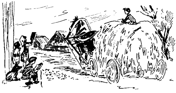 Люди создали и другие чудеса: бегущую по полям избу — самоходный комбайн, великанище — шагающий экскаватор. Они привели к сухой степной деревне живую воду.