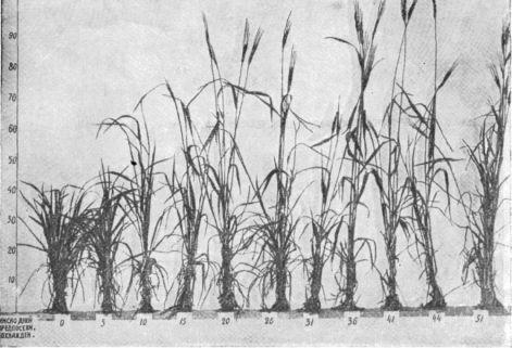 Ошибочность такого утверждения довольно легко доказать. Для этого достаточно высеять семена некоторых сортов озимых пшениц в таких условиях, где в продолжение полутора-двух месяцев температура будет от +5 до +10°; тогда растения всё время будут расти и без всякого периода покоя перейдут к колошению, а потом при более высокой температуре — и к созреванию (рис. 1).