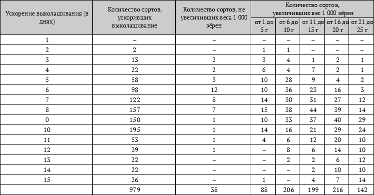 Исходя из всего этого, легко придти к выводу, что нельзя разграничить все сорта пшениц (или других растений) на группу озимых и группу яровых, на группу раннеспелых и группу позднеспелых, отрывая это разграничение от конкретных условий района, где эти сорта будут выращиваться.