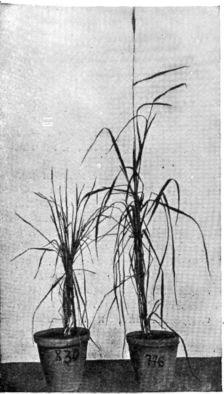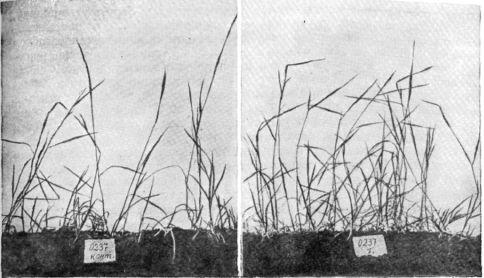 Высеяны обычными семенами 14 декабря 1929 г. в теплице при температуре 5-10°. В конце февраля растения ржи выколосились. В середине апреля после повышения температуры в теплице дали выколашивание и пшеницы.