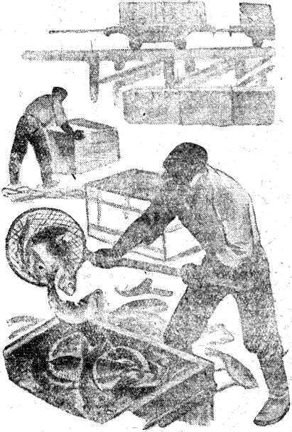 До начала работы полярных экспедиций остались считанные недели. Суда готовятся к работе. ледокольщики кончают ремонт машин, грузится провиант и полярное снаряжение.