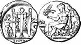 Как щит Ахилла (подобно любому другому щиту) имел центр с небольшим возвышением, так и земля, имевшая форму щита, обладала в представлениях древних народов срединной горой, которую называли «пупом земли». В силу слабо развитых географических представлений и уверенности каждого народа в его превосходстве над другими народами греки искали «пуп земли» в своей собственной стране. Они поместили его на месте знаменитейшего храма Аполлона в Дельфах, посещавшегося не только греками, но и чужеземцами. Оставалось только объяснить с помощью мифа, что центральное положение храма – не людская выдумка, а факт, установленный самими богами. За этим дело не стало! Появился миф, будто Зевс послал с востока и запада двух орлов, которые встретились в воздухе прямо над Дельфами. В знак того, что Дельфы являются «пупом земли», там позднее, когда уже землю представляли в форме шара, был установлен мраморный шар с двумя золотыми орлами по сторонам.