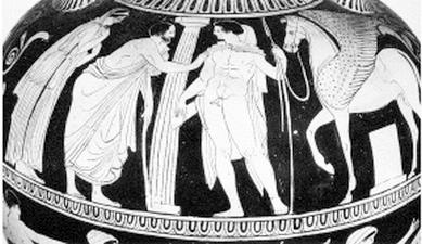 Селена выходит из моря (роспись на сосуде)