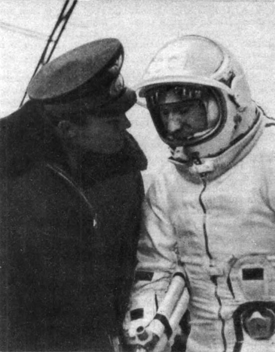 С полковником Павлом Беляевым мы товарищи по оружию еще с тех дней, когда героическими усилиями миллионов советских и других простых людей Европы человечество было вызволено из мрачных застенков „второго средневековья“, в котором пытался сгноить его кровавый фашистский империализм. С подполковником Алексеем Леоновым мы товарищи по мечте, по стремлению, которое воодушевляет всех нас в борьбе и труде. Каждый на своем посту, мы были и будем вместе в наших желаниях, в нашей борьбе, в наших трудах и наших мечтах.