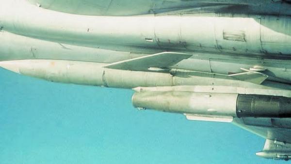 Сверхзвуковая крылатая ракета Х-22Н под крылом носителя Ту-22М3. Фото С. Г. Мороза