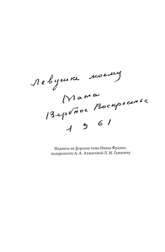 Мальчик посылал свои стихи матери в Ленинград, и Анна Андреевна находила, что Лева пишет совсем как отец, «стиль такой же». Но ее огорчало то, что он постоянно находится в мире фантазий: пираты, древние греки, исторические баллады, далекие страны… А ей хотелось бы, как записал Лукницкий, «чтобы Лева нашел бы достойным своей фантазии предметы, его окружающие, и Россию… Чтобы он мог найти фантастику в плакучей иве, в березе…».