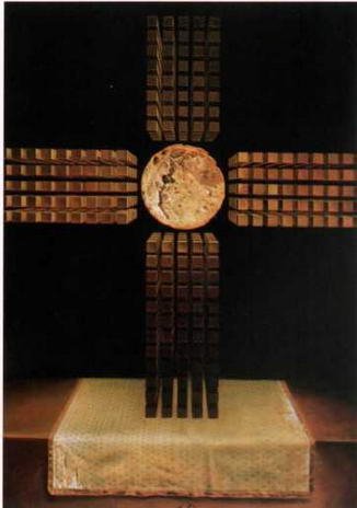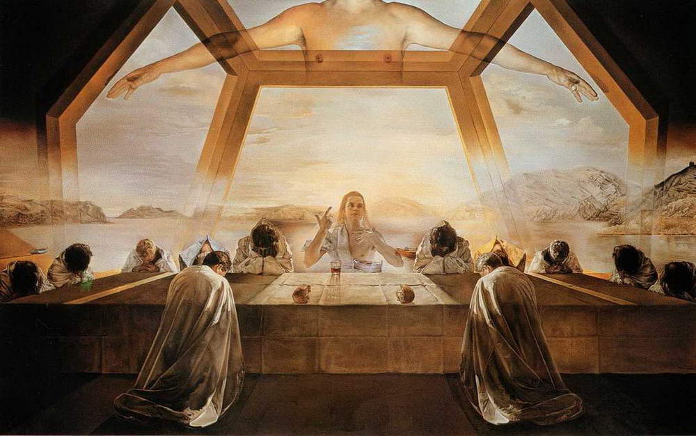 Очень близко к этому космическому распятию - и по своей задумке, и по идее, и по фигуре Христа, молодого, современного, красивого атлета, - и другое знаменитое распятие Дали, так называемое Гиперкубическое распятие (1954). Там та же космическая безбрежная ночь, глубокая тишина, молодое страдающее тело и одинокая, прекрасно написанная женская фигура с лицом Талы в глубокой медитации наблюдающая эту величественную картину.