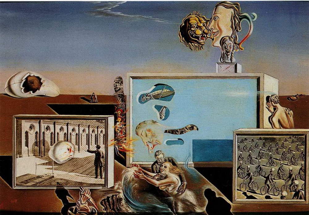 Между тем, словно убедившись в том, что кубизм ему явно по силам и он в состоянии делать вещи ничуть не хуже самого Пикассо, Дали оставляет кубизм и в 1927 году пишет свои первые сюрреалистические картины: Мед слаще крови и Механизм и рука. К тому времени, еще не став официально членом группы Бретона, он уже целиком поглощен идеями сюрреализма и вполне начитан и образован в близкой и предшествующей ему литературе. Фрейд, его новаторское, революционное учение о бессознательном и влиянии бессознательного на психологию человека, его внимание к снам и интерес к вопросам секса и сумасшествия, его сочинения, начавшие издаваться в Испании в начале 1920-х годов, - все это совершенно перевернуло прежние незыблемые представления о человеке и приобрело невероятную популярность именно в той интеллектуальной мадридской среде, в которой и формировался Дали. С появлением Фрейда на авансцене европейской мысли открылась новая неведомая вселенная, имя которой было бессознательное, то есть те тайные невидимые пружины, которые и движут, как считал Фрейд, человеком. В казавшемся банальным и исчерпанном мире человека вдруг открылся целый космос, полный загадок и тайн, и первыми начали осваивать этот космос сюрреалисты. «Именно тогда, - пишет Дали, - я прочитал Толкование сновидений Зигмунда Фрейда. Это стало одним из величайших событий моей жизни. С тех пор я неустанно занимаюсь толкованием себя - не только сновидений, но абсолютно всего, что со мною происходит, включая так называемые случайности»[