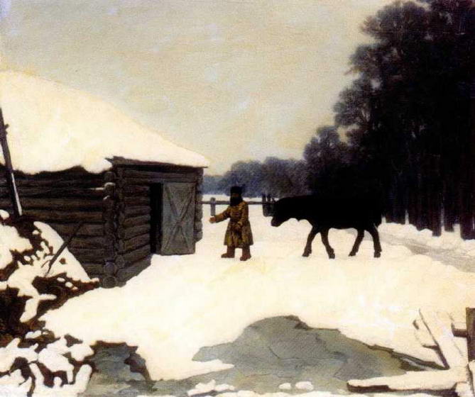 А между тем живопись Николая Крымова стремительно менялась: тонкий лиризм, недосказанность изображения, предчувствие и утверждение изменчивости и исчезновения увиденного, живописный де- коративизм (Солнечный день, Снегири, К весне) - все, что сближало его с художниками «Голубой розы», временно отступило, открывая дорогу другим настроениям и эмоциям.