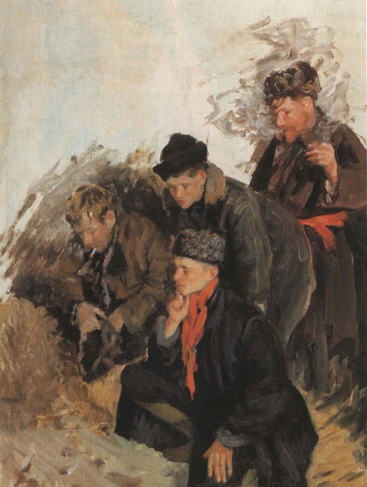На отчетной ученической выставке осенью 1898 года на один из этих этюдов - Деревенские портные - обратил внимание известный шведский художник Андерс Цорн, посетивший выставку в Академии. Он отобрал эту работу для выставки в Стокгольме.