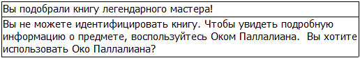 – Око Паллалиана? Для идентификации этого предмета требуется оценочный предмет высшего класса?