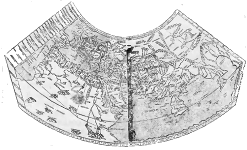 1. Птолемеево представление об «обитаемой части мира», составляющей ровно половину долготы земного шара, так же как и Пятикнижие, было воспринято мусульманским миром буквально с того момента, как при дворе Альмамуна (813–833) начались занятия наукой. Но по мере того как халифы-завоеватели открывали на востоке земли, простирающиеся далеко за пределы, очерченные Птолемеем, нужно было во имя неприкосновенности его теории уменьшить ту единственную часть суши, которая полностью описана в его карте: «К несчастью, на западе не обнаружено новых стран, которые могли бы уравновесить это сжатие». Ко времени Массуди, т. е. к X в., факты и теория оказались в безнадежном противоречии.