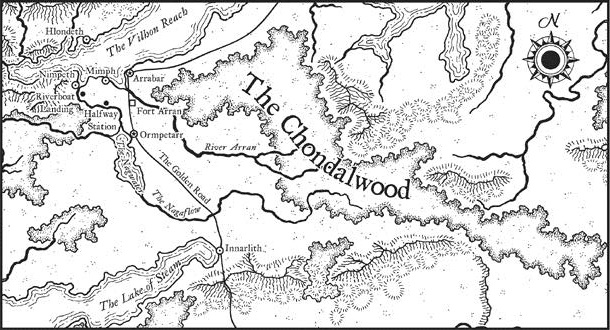 Арвин облокотился о леер, рассматривая широкую бухту, в которую только что вошло судно. Впереди лежал Мимф. Как и Хлондет, это был город-порт. Его гавань так тесно была уставлена судами, что мачты напоминали голые стволы зимнего леса. Однако на этом сходство двух городов заканчивалось. Хлондет был построен змеиным народом, о чём свидетельствовали круглые башни, изящные арки виадуков, наклонные пандусы, ведущие в закруглённые дверные проёмы, напоминающие вход в змеиные норы. Строения Мимфа, напротив, были приземистыми и угловатыми. Здесь преобладали острые края и углы, начиная с прямоугольных окон и дверей и кончая зубчатыми лестницами, поднимавшимися от линии пирсов. Тогда как постройки Хлондета были сделаны из --">