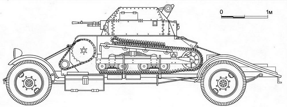 После установки танка вся конструкция в целом напоминала бронеавтомобиль, «с которого, кузов может в любой момент съехать и вести бой на гусеницах», — так сказано у Хейгля. В действительности всё было не так просто. Попади подобный гибрид во внезапный бой, сражаться польским танкистам пришлось бы на неповоротливом колёсном ходу. Причём водитель «автотранспорта» не имел даже элементарной защиты от пуль.