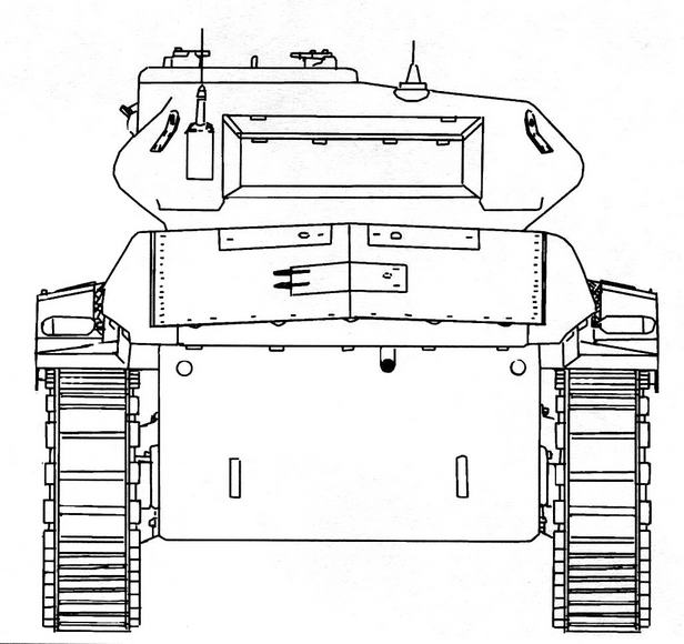 Конструкция танка по тому времени считалась традиционной. Блок двигателей находился сзади, коробка передач от танка М3 (она осталась без изменения) и ведущее колесо с цевочным зацеплением — спереди.