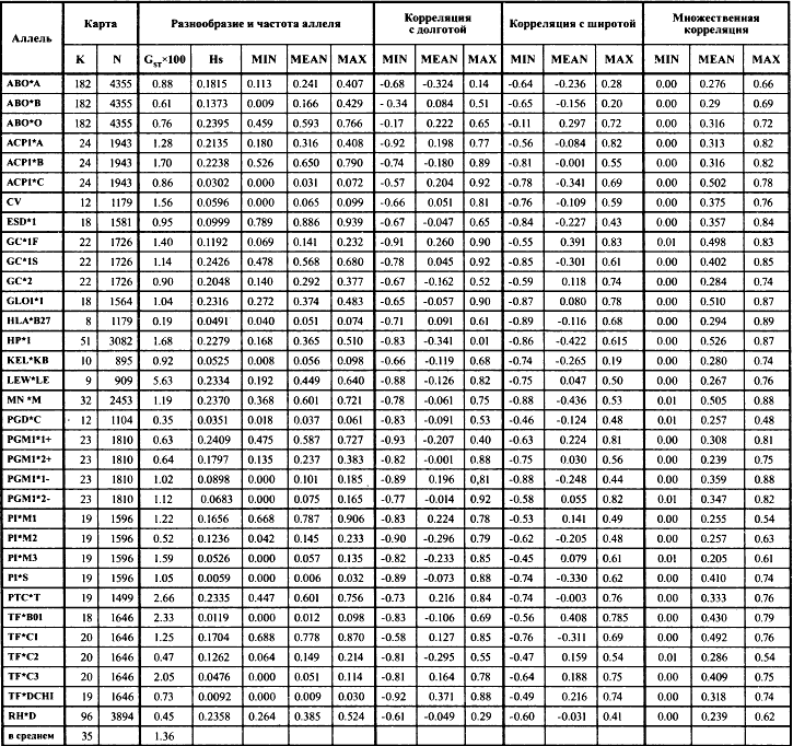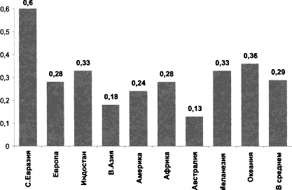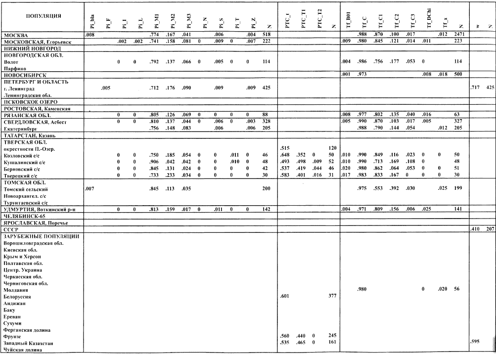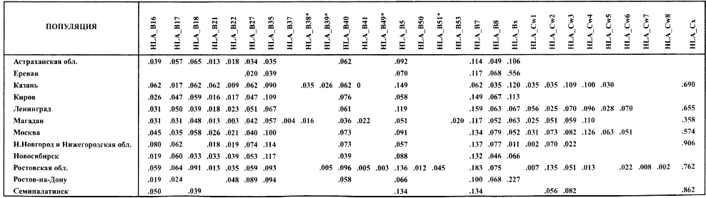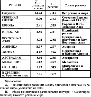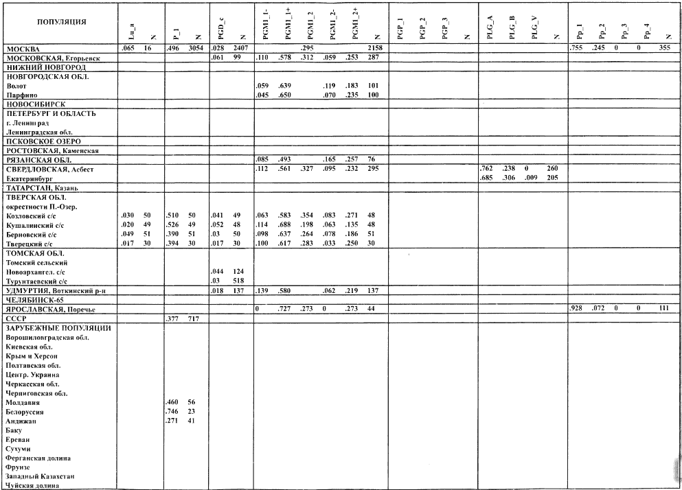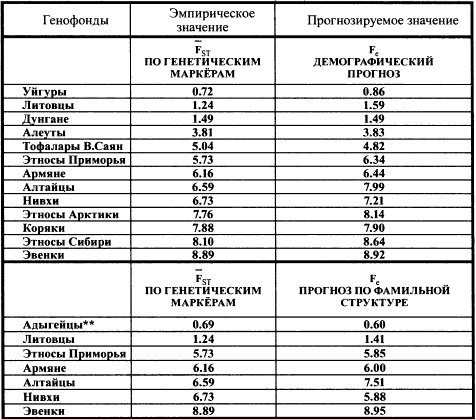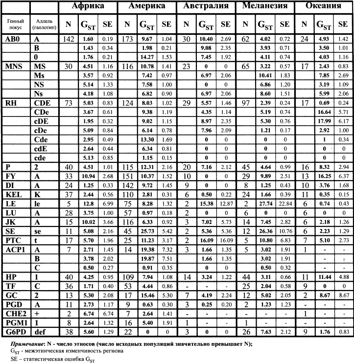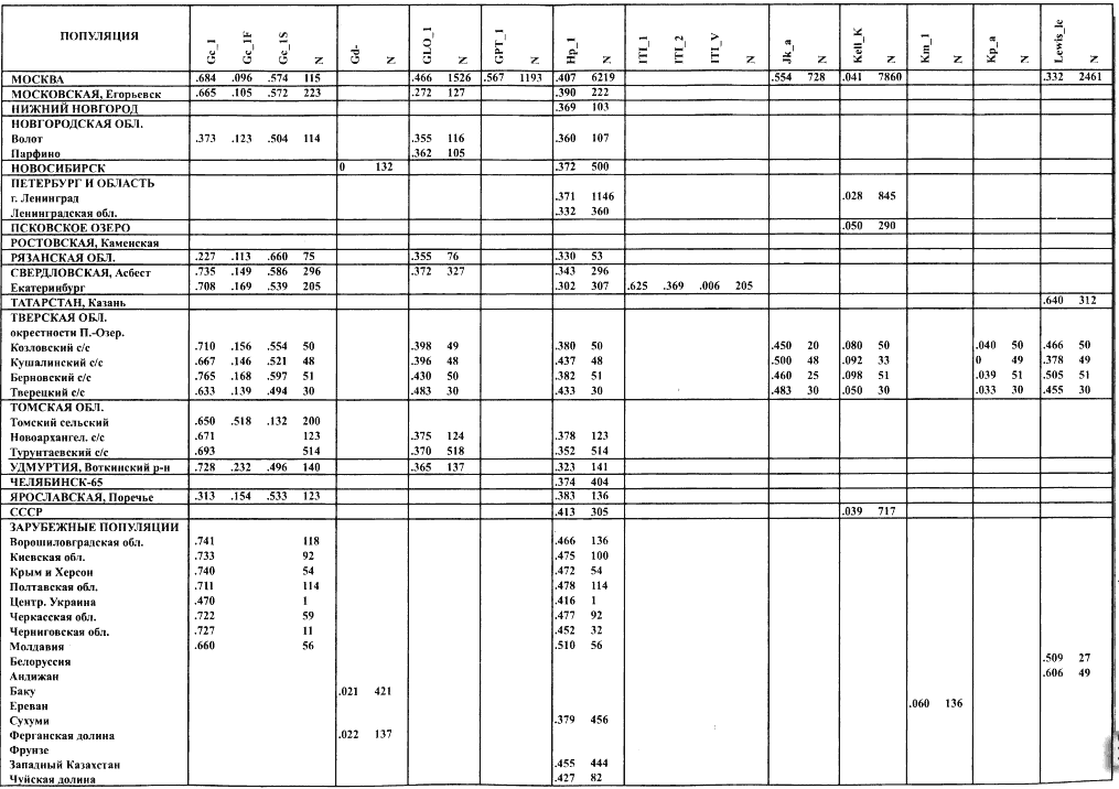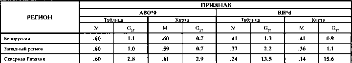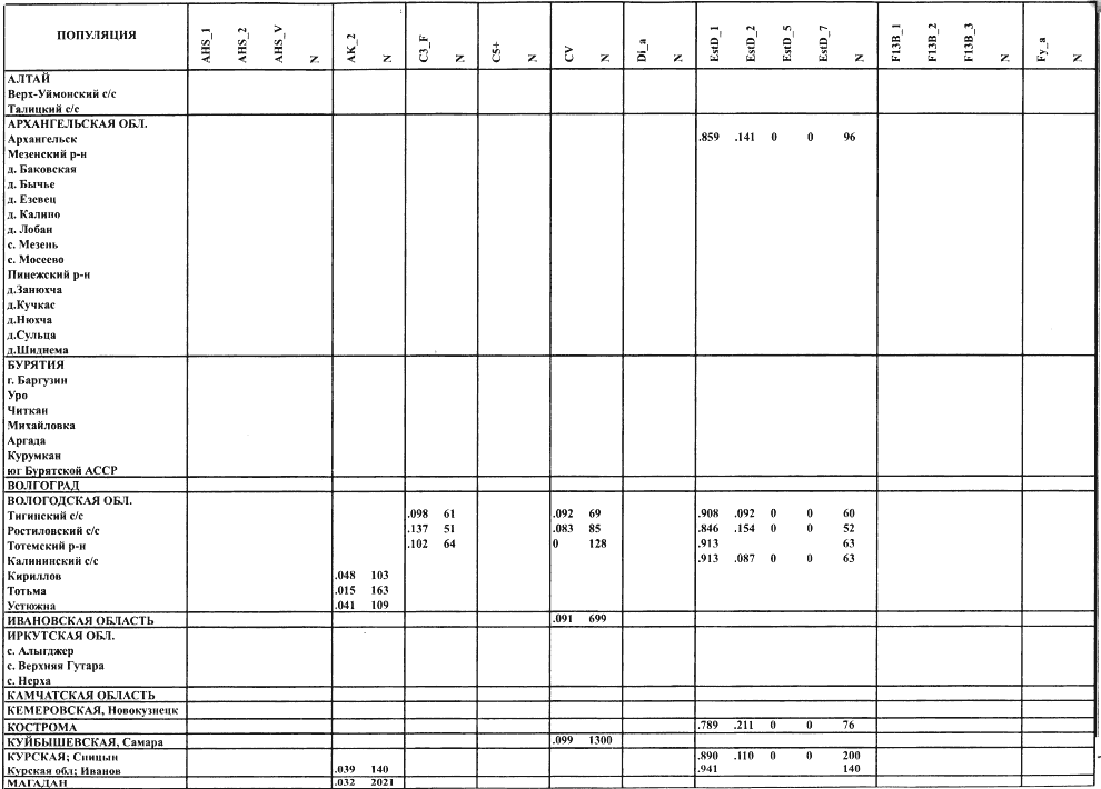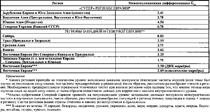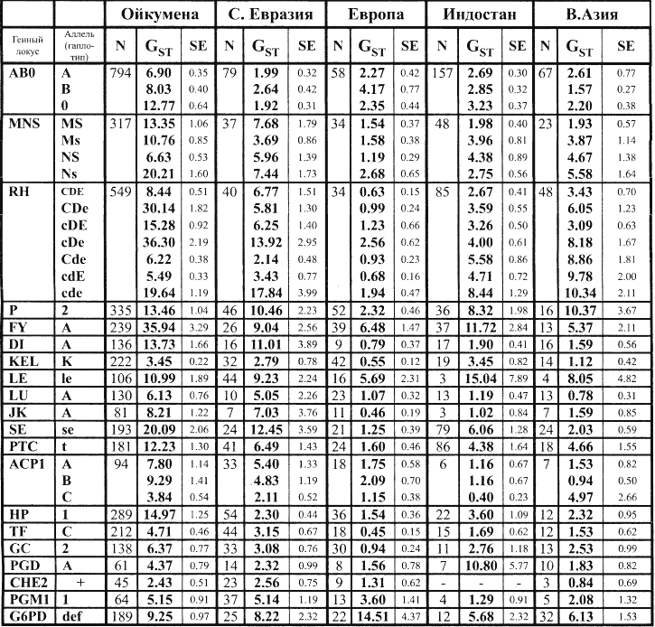 Мы здесь приводим для каждого из регионов его реальные наблюдаемые значения FST, полученные нами по классическим маркёрам.