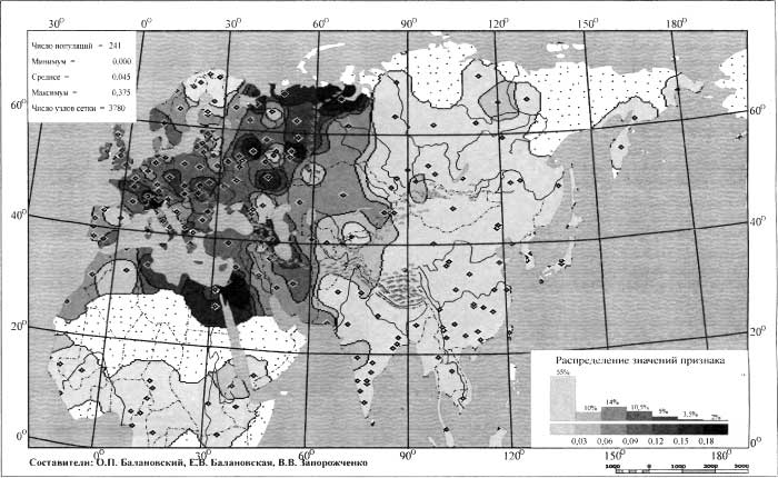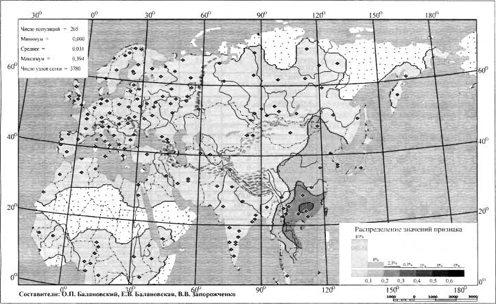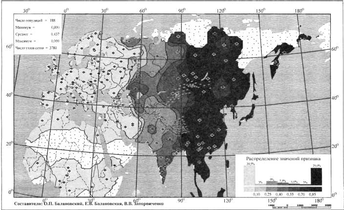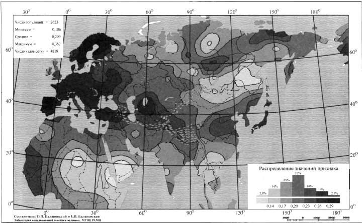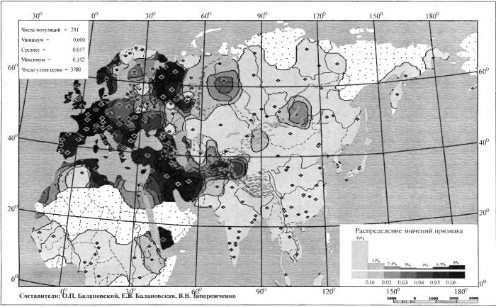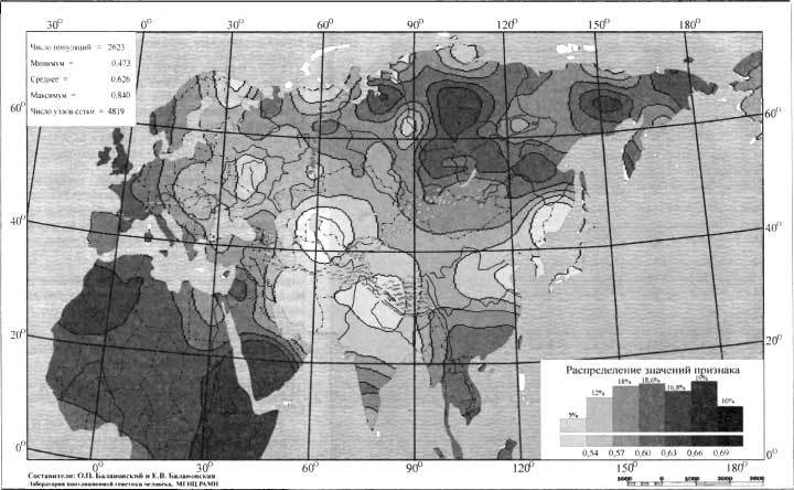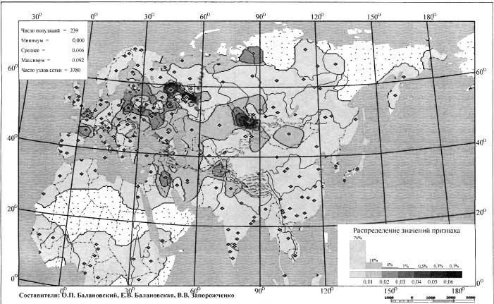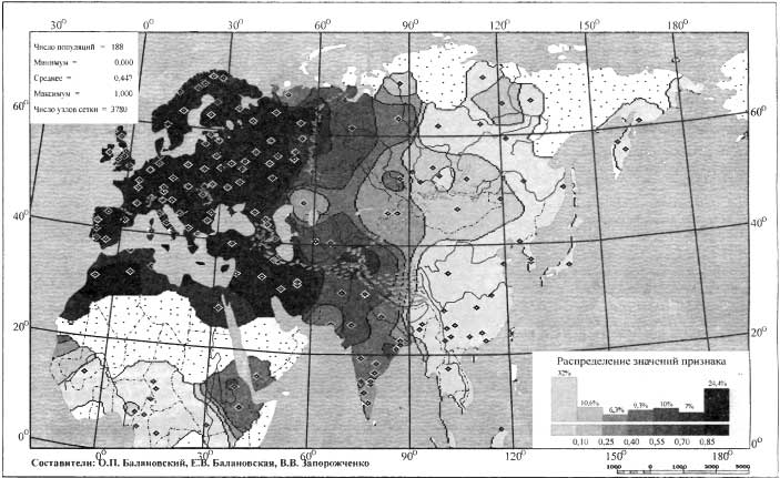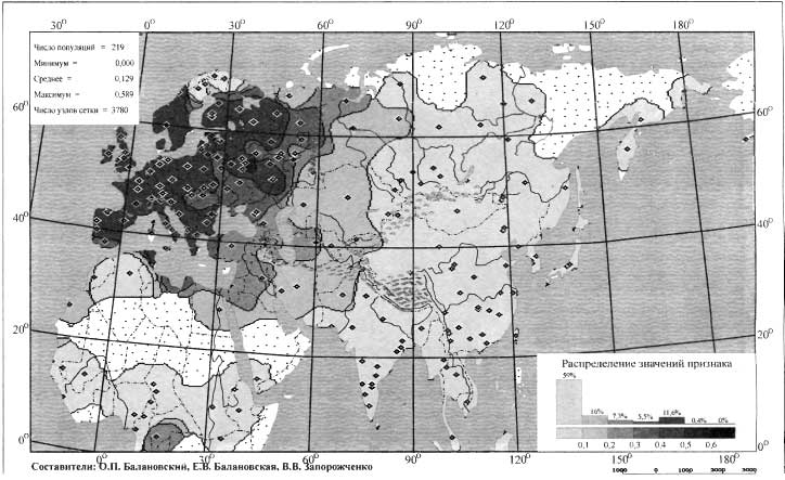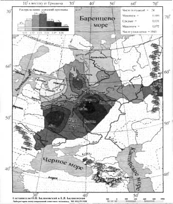 Даже если сейчас данный аллель селективно-нейтрален — он мог быть адаптивно значимым на прошлых временных срезах, на иных поворотах истории генофонда. При анализе селективной структуры генофонда мира по всем наиболее изученным классическим маркёрам, мы, к своему удивлению, не обнаружили ни одного аллеля, который бы во всех регионах мира и на всех этапах истории был бы селективно-нейтральным! [Рычков, Балановская, 1990 б; Балановская, Рычков, 1997]. Более того, аллели во времени и в пространстве могут не только переходить из селективно-нейтральных в разряд селективно-значимых и наоборот — может меняться даже вектор отбора! То есть один и тот же вариант гена может быть подвержен то стабилизирующему, то дифференцирующему отбору на разных отрезках времени и пространства мирового генофонда.