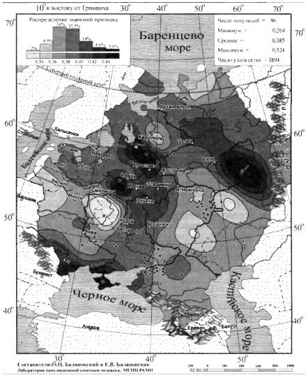 «Изменчивость внешнего облика русского человека столь же характерна для Русской равнины, сколь и отличительные черты русского человека, выделяющие его среди других народов. Установлено, что русские — типичные европеоиды. Установлено, что татаро-монгольское иго не оставило в русском роде практически никаких следов с генетической точки зрения. У русских смешанных браков (за пределами группы восточноевропейцев) — всего около 2 %.