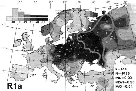 рис. 6.2.5.в книге). Однако по мужской линии, т. е. для Y-хромосомы, около 47 %, почти каждый второй, относится к линии R1a, традиционно связываемой с балто-славянской языковой группой. Связь с финно-угорскими популяциями здесь значительно ниже. Таким образом, утверждать, что «мы ближе к финно-уграм, чем к праславянам» конкретные научные данные не дают никаких оснований.