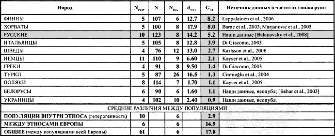 разделе 9.2, составлена и систематизирована В. В. Запорожченко, а сбор и систематизация данных по частотам гаплогрупп Y хромосомы в популяциях Европы проведены А. С. Пшеничновым.