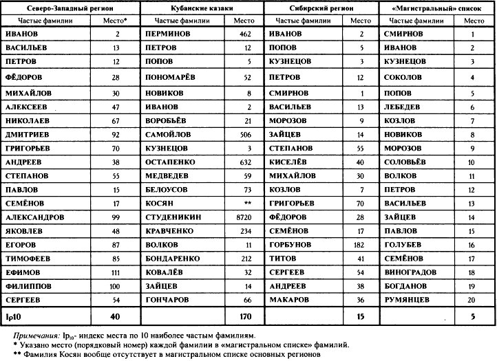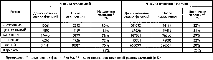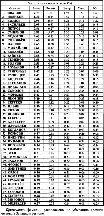 Во многих деревнях встречаются лишь несколько фамилий. Поэтому слишком велики случайные колебания частот фамилий между отдельными населёнными пунктами. Колебания между соседними «волостями» (объединяющими несколько деревень) значительно меньше.