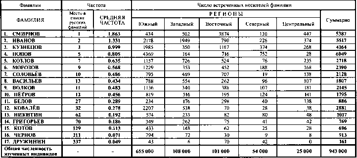 Прежде всего, авторы искренне признательны В. Е. Дерябину, Н. А. Долиновой, А. П. Бужиловой и В. А. Спицыну, благодаря сотрудничеству с которыми начиналось наше исследование русского генофонда. В. Е. Дерябин помог осуществить нашу давнишнюю мечту о совместном анализе данных антропологии и генетики: благодаря составленной им базе данных по соматологии и рассчитанным каноническим переменным стал возможен анализ антропологии как русских популяций, так и всей Восточной Европы. Н. А. Долинова великодушно предоставила для анализа массив дерматоглифических данных о русских и иных популяциях Восточной Европы. В. А. Спицын не только предложил включить в нашу базу данных собранную им информацию о частотах классических маркёров в русских популяциях, но и способствовал нашему решению взяться за широкомасштабный анализ русского генофонда. Только благодаря предложению А. П. Бужиловой провести картографический анализ имеющегося у неё массива данных о русских фамилиях, мы нашли силы обратиться и к этому источнику информации о генофонде. В последовавшем сборе массовых данных о русских фамилиях нам оказали бесценную помощь И. Н. Сорокина, М. И. Чурносов, И. В. Евсеева, Н. Н. Аболмасов, Э. А. Почешхова, М. Б. Лавряшина и М. В. Ульянова. Благодаря любезности Е. К. Гинтера, мы пополнили информацию о Костромской области архивными списками фамилий, собранными под его руководством. Часть работы по анализу списков фамилий была выполнена Д. С. Соловьёвой, а первичная обработка всех данных и расчёт частот фамилий легли на плечи С. М. Субботы.