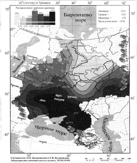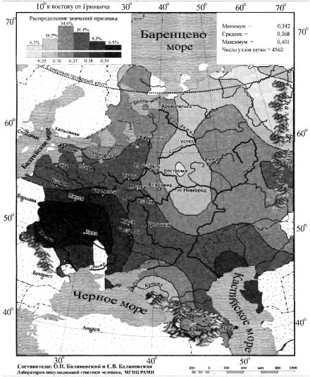 собирание воедино не только сведений о разных землях, но и данных разных наук: генетики, антропологии и лингвистики. Каждый из разделов этих наук даёт независимые свидетельские показания об изменчивости русского генофонда. Причём каждая наука, каждый очевидец представляет целый ворох свидетельств — изменчивость множества признаков.