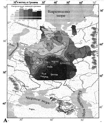 геногеографии — науки, изучающей, как изменяется генофонд в географическом пространстве. Благодаря ей мы легко можем сравнить — как различается русское население на разных территориях? А также — насколько русские популяции отличаются от их соседей по Европе и Евразии? Такое сравнение мы проведём с помощью карт, которые без труда прочитает любой читатель. Именно карты послужат путеводной нитью — и в этом первая особенность книги.