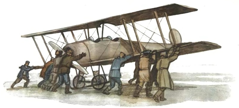 До земли было уже совсем близко, когда потребовалось немного прибавить газу — иначе самолёт, снижаясь, не дотягивал до аэродрома. И тут-то случилась беда: мотор не послушался! Он трясся, выплёвывал чёрные клубы дыма, но не тянул. А когда мотор не работает, самолёт может только снижаться. Так он и дошёл до самой земли — не там, где его ждало ровное, укатанное поле аэродрома, а в совсем неподходящем месте — среди бугров, столбов и строений.