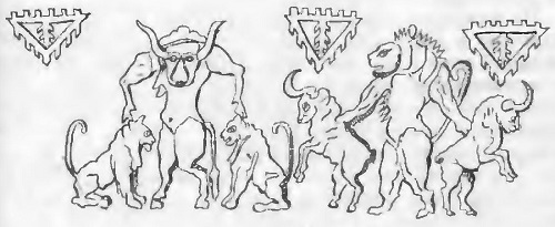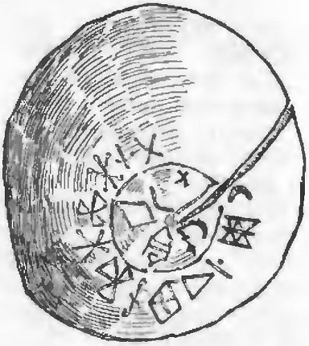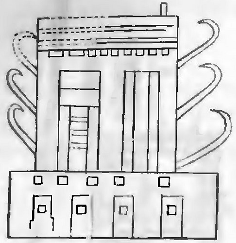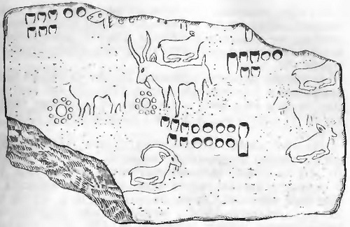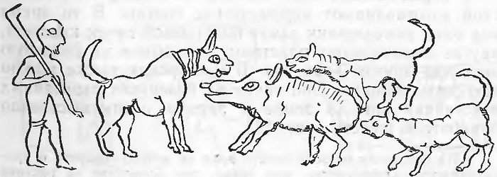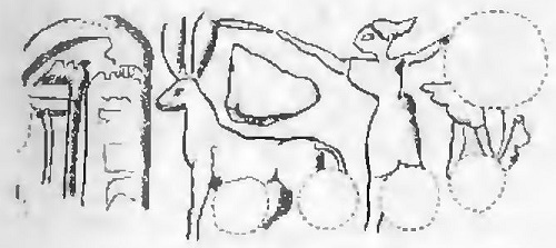 Иллюстрацией к этому служит рис. 16. Табличка с изображением лошадей представляет собой особый интерес, так как является, по-видимому, самым древним свидетельством существования лошади вообще. Воспроизведены исключительно головы. По довольно убедительному предположению В. Шейля, когда грива (на рисунке это черточки) поднята вверх, подразумеваются жеребцы, если же грива спущена, речь идет о кобылах, а при полном отсутствии гривы — о жеребятах. Табличка содержит (например, слева от лошадиных голов) также цифры: знак, напоминающий оттиск большого пальца, означает единицу, маленькие кружки, как и в Шумере, — десятки.