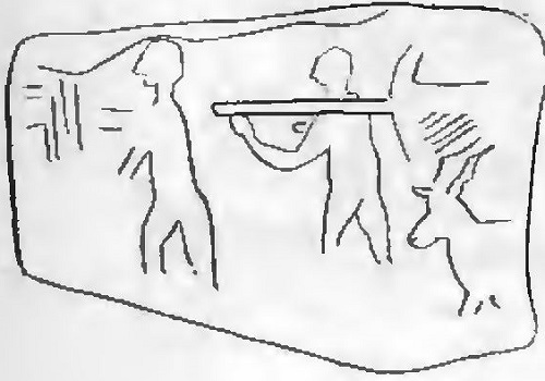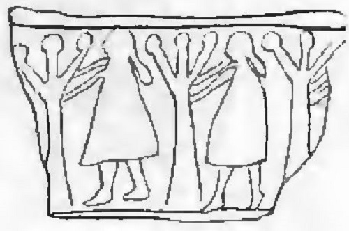 [10]. На полях большими группами работают мужчины, они готовятся к севу, обрабатывая землю трехзубчатыми мотыгами. Эта печатка (рис. 8) относится, возможно, еще к IV тысячелетию до н.э. Изображение на ней подтверждается и археологическими находками. Роерт М. Адамс (Чкаго) отмечает, что в Сузиане той эпохи имели широкое распространение каменные мотыги, серпы из твердо обожженной глины, а также кремневые лезвия для серпов. Мотыга и серп были, таким образом, с древнейших времен главными орудиями труда эламского земледельца. Около 3000 г. до н.э. на изображениях печатей появляется плуг (рис. 9). В сельском хозяйстве заняты и женщины: на них широкие рубахи; они трудятся на финиковых плантациях (рис. 10).