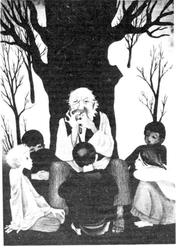 Я в детстве не знала ни деда, ни бабушки. Правда, одна моя бабушка была жива, но жила отдельно от нас; это была строгая старуха, и мы побаивались ее. Но вот дедушку я могу себе ясно представить. Могу представить, как теплым майским вечером он сидит на колоде в саду и вырезает дудку для внуков. Рукояткой ножа легонько постукивает по ветке бузины, чтобы отбить кору и снять ее целиком, и при этом тихонько напевает: