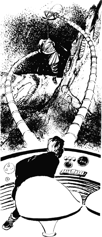 УР почувствовал, как мощные конечности существа опутывают его, как к металлу корпуса присасываются какие-то неприятные щупальца. Он отдал команду своему защитному центру — подать ток высокого напряжения на наружный покров. Существо с ревом отскочило, закружилось на месте, разбрасывая вокруг себя камни и умерло. УР подошел к трупу, осмотрел его, сказал: