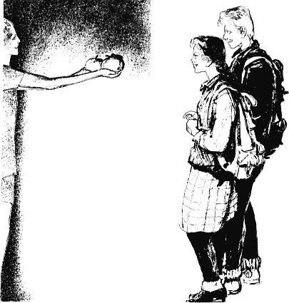 Перед ним стояли мальчик и девочка. Оба были одеты в голубые легкие костюмы — элегантные куртки из радужной ткани, брюки ниже колен. Голубые глаза парня смотрели на воспитателя ласково и невинно. Черноволосая девочка небрежно закинула толстую косу за плечо, опустила длинные ресницы, тяжело вздохнула.