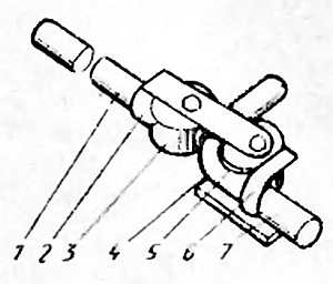 1 — рукоятка; 2 — корпус; 3 — труба; 4 — втулка; 5 — направляющий фланец; 6 — болт; 7 — плашка