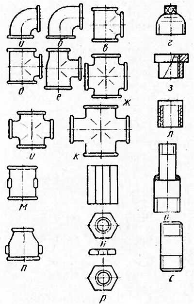 «Малый комплект труб» можно приобрести в магазинах «Сантехника». В комплект входит несколько полудюймовых труб длиной около 1,5 м с резьбой по концам, а также угольники, муфты, вентиль. Кроме водогазопроводных труб, промышленность выпускает еще и трубы специального назначения. Так, бесшовные холодно- и горячедеформированные трубы качественнее водогазопроводных. При использовании труб специального назначения, однако, следует учитывать тот факт, что наружные диаметры таких труб отличаются от соответствующих диаметров «обычных» труб, что может вызвать затруднения при нарезании на них стандартной трубной резьбы.